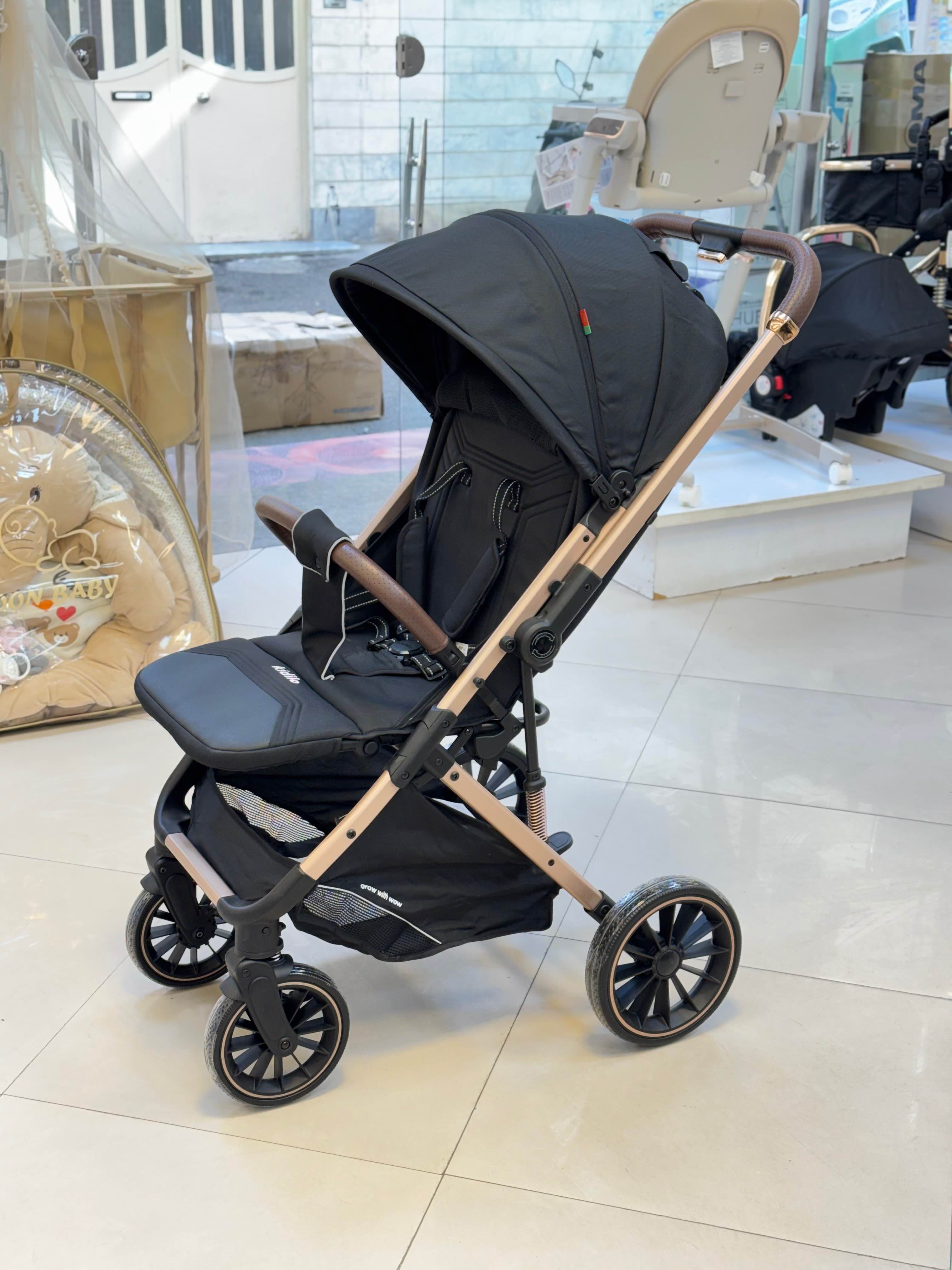 ایمنی: کمربند 5 نقطهای Y شکل، گارد محافظ قابل جدا شدن، ترمز تک استپ، کمک فنر.